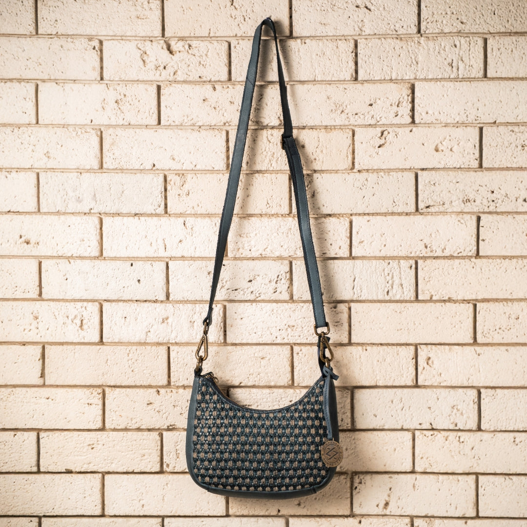 The design features intricate weaving with leather laces and a sturdy cotton dori, adding a unique handcrafted touch. Designed for those who value both functionality and refined craftsmanship, this handbag is a versatile companion for daily use or travel.